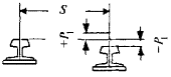 | Разность отметок головок рельсов в одном поперечном сечении Р1, мм S - размер колеи (пролет) |