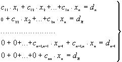 Запишем треугольную систему, получающуюся после выполнения всех циклов. При приведении системы к треугольному виду освободятся клетки в нижней половине матрицы системы (11). Получим
