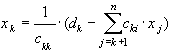 Треугольная система (17) легко решается обратным ходом по формулам (13).