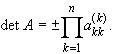 При замене строк матрицы их линейными комбинациями значение определителя не меняется. Знак меняется при каждой перестановке строк. Для треугольной матрицы величина определителя равна произведению элементов, стоящих на главной диагонали. Поэтому определитель вычисляется по формуле: