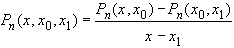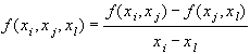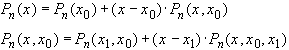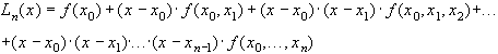 Формула (17) более удобна для вычисления, чем запись интерполяционного многочлена в форме Лагранжа, т.к. добавление новых узлов интерполяции влечет вычисление только новых слагаемых, добавляемых к тому, что было вычислено с меньшим числом узлов. При использовании формы Лагранжа в этой ситуации требуется выполнять все вычисления заново.