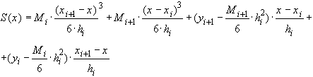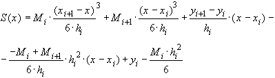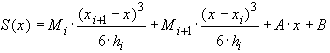 Для построения кубического интерполяционного сплайна могут быть использованы различные подходы. Проведем построение сплайна, исходя из условий 1) - 4). Из 1) и 2) следует, что??? непрерывная функция, линейная на каждом