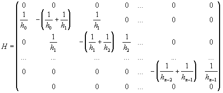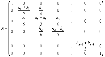 Матрица с диагональным преобладанием невырождена. Следовательно, система (42) однозначно разрешима, т.е. существует единственный кубический интерполяционный сплайн. Кроме условий 4) - условий "свободного провисания" интерполяционной кривой в точках