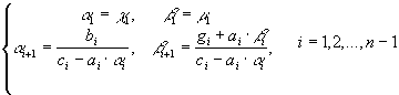 Затем осуществляется обратная прогонка по формулам