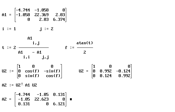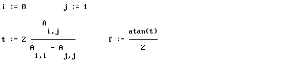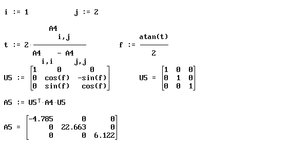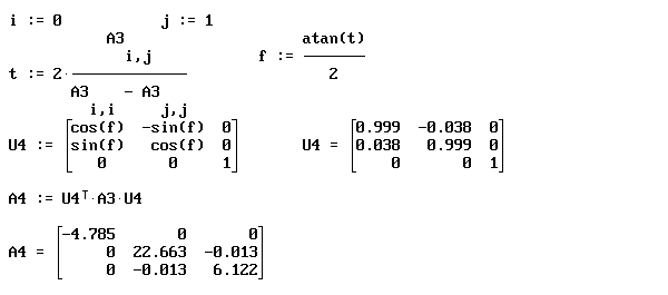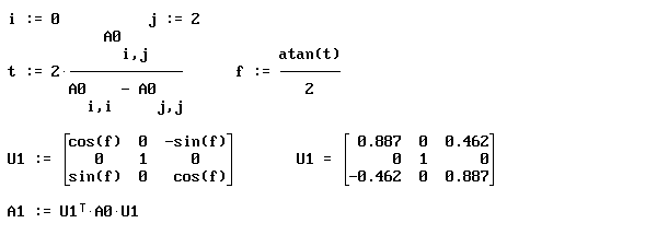 В исходной матрице выше главной диагонали выбирается максимальный элемент. Определяется угол поворота.