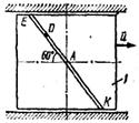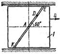 Механическая система состоит из прямоугольной вертикальной плиты 1 массой m1 =18 кг, движущейся вдоль горизонтальных направляющих, и груза D массой m2 =6 кг (рис. Д5.0–Д5.9, табл. Д5). В момент времени t0 =0, когда скорость плиты и0= 2 м/с, груз под действием внутренних сил начинает двигаться по желобу плиты. На рис. 0–3 желоб КЕ прямолинейный и при движении груза расстояние s = AD изменяется по закону