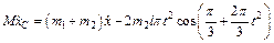 Отсюда получаем зависимость от времени координаты х, определяющей одновременно перемещение тележки;