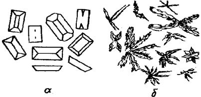 образующиеся при медленной (а) и быстрой (б) кристаллизации