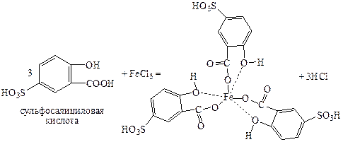 4. С сульфосалициловой кислотой (в кислой среде) и салициловой кислотой (в присутствии NH4OH) с образованием комплексных соединений, состав и окраска которых зависят от рН среды.