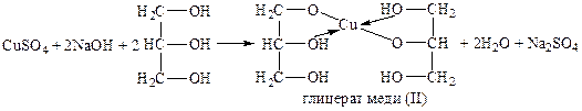 6. С глицерином в основной среде с образованием синего раствора глицерата меди (II).