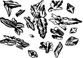 Методика: в пробирке к 2-3 каплям исследуемого раствора добавляют по каплям концентрированный раствор аммиака до растворения осадка гидроксида кадмия. Наносят на предметное стекло каплю полученного раствора и реагента, наблюдают под микроскопом бесцветные кристаллы в форме октаэдров.