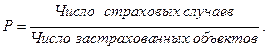 В основе определения величины нетто-ставки лежит вероятность наступления страхового случая (Р), которая может быть определена как отношение числа страховых случаев к общему числу застрахованных объектов (при этом принимается допущение, что от одного страхового случая страдает один застрахованный объект):