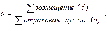 Числитель данного выражения будет означать для страховщика суммарную величину возмещения, выплаченного по произошедшим страховым случаям (f), а знаменатель – совокупную страховую сумму застрахованных объектов (b).
