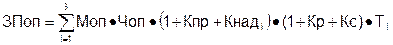 где Кпр – премиальный коэффициент; Кнадi – надбавка за работу в вечернее и ночное время; Кр, Кс – соответственно районный и северный коэффициенты; i – номер текущей смены; 3 – количество смен (1 – дневная, 2 - вечерняя, 3 - ночная); Т – время работы смен в месяцах; Моп – месячная зарплата оператора; Чоп – количество человек;