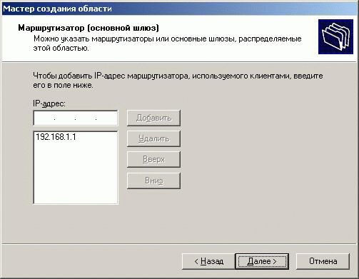 - Далее мастер предложит настроить параметры, специфичные для узлов IP-сети, относящихся к данной области: