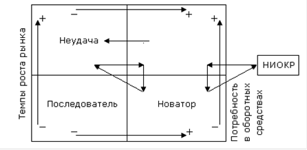 Присутствие на растущем рынке означает повышенную потребность в финансовых средствах для своего развития, т.е. обновления и расширения производства, проведения интенсивной рекламы и т.д. Если темп роста рынка невелик, например зрелый рынок, то товар не нуждается в значительном финансировании.