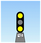 один желтый огонь - "Разрешается поезду следовать на станцию по главному пути с готовностью остановиться; следующий светофор (маршрутный или выходной) закрыт" (рис. 5.3);
