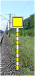 Обратная сторона сигнала "Уменьшение скорости" (зеленого цвета) днем и ночью (рис. 6.8) на перегоне и на главном пути станции указывает на то, что машинист имеет право повысить скорость до установленной после проследования опасного места всем поездом.