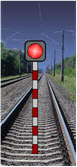 "Остановка" - в виде щита прямоугольной формы красного цвета с обеих сторон (или красный флажок на шесте) днем и красный огонь фонаря на шесте ночью (рис. 6.6);