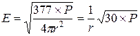 Практически плотность потока энергии J (Вт/м2) в зависимости от расстояния r (м) до излучателя в воздухе определяется через мощность излучения радиотехнического устройства P (Вт) и коэффициент усиления излучающей антенны G: