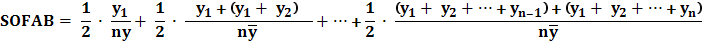 . Остальные части фигуры OFAB представлены трапециями, площади которых определяются по формуле (произведение полусуммы оснований на высоту). B результате имеем