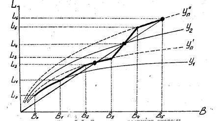 В точке В3 осуществлен эвристический переход на другую технологию, которая характеризуется спектром значений уровня технологии от У2 до У11n и имеет начальную производительность L4.