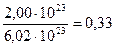 в) 2,00 . 1023 молекул воды соответствуют 0,33 моль воды, т. к.