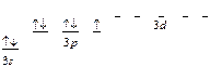 Поглощая энергию извне, атом хлора может переходить в возбужденное состояние, при этом валентные электроны в пределах одного слоя распределяются по одному в АО (ячейках)