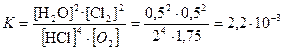 4. Определим равновесные концентрации хлористого водорода и кислорода: