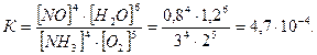 Ответ: К = 4,7·10-4; С нач(NH3 ) = 3,8 моль/дм3; С нач (02) = 3 моль/дм3 .