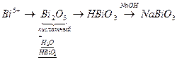 Элемент висмут указан в пятой группе периодической таблицы в главной подгруппе: характерными степенями окисления являются +З и +5. В этой реакции висмут выступает в роли восстановителя и повышает степень окисления от +3 до +5.