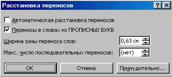 1. Выбрать команду Сервис –> Язык –> Расстановка переносов. На экране появится окно диалога Расстановка переносов (рис. 4.11).