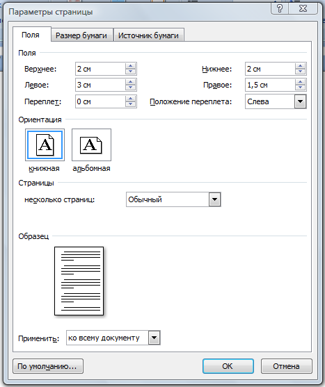 Работа с документом начинается, с разметки страницы рисунок 1.1 выбирается размер полей и ориентация страницы.
