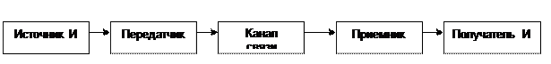 Для того, чтобы в материальном мире происходили обмен И, ее преобразование и передача, должны быть использованы источник информации, передатчик, канал связи, приемник и получатель информации. Среда передачи объединяет источник и получателя информации в ИС.
