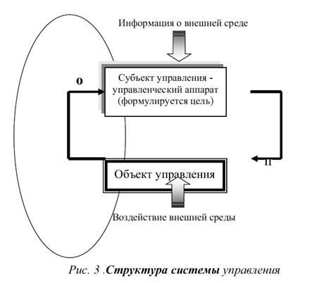 В соответствии с кибернетическим подходом система управления представляет собой совокупность объекта управления, например предприятия, и субъекта управления -управленческого аппарата (Рис.3) Последний объединяет в себе сотрудников, формирующих цели, разрабатывающих планы, вырабатывающих требования к принимаемым решениям, а также контролирующих их выполнение. В задачу же объекта управления входит выполнение планов, выработанных управленческим аппаратом, т.е. реализация той деятельности, для которой создавалась система управления.