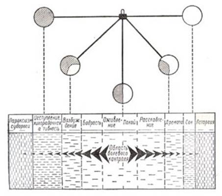 Обратите же внимание на срединную точку между Оживлением и Покоем. Это Точка Равновесия, достичь ее непросто, но допустим, сейчас, читая эти строки, вы находитесь именно в ней, допустим, это точка сосредоточенности. Что вам мешает, не выпуская из рук книги, закрыть глаза и перейти в столь желаемую для многих область покоя? Книга? Но это не такая уж большая помеха: и оживление и покой суть легкие качания маятника активности в пределах каждодневного бодрствования, и воля здесь царствует наравне с обстоятельствами. Вполне можно продвинуться и на следующую ступеньку, подальше: если покой достигнут, нетрудно перейти в расслабление. На фоне оживления, если вы не утомлены, не больны и не огорчены, почти сама собой возникает бодрость. Расслабившись, легко задремать...