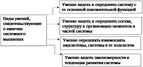 Исходя из его определения, системное мышление характеризуется следующими операциями – анализ, синтез, сравнение, обобщение, классификация. Таким образом, о наличии системного мышления свидетельствуют следующие виды умений (рис. 2):