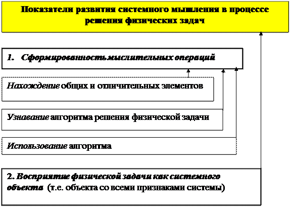 Уровень развития системного мышления (следовательно и абстрактно-логического) у учащихся ФМК и студентов физических специальностей определяется в процессе решения физических задач по показателям (рис. 5):