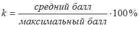 Уровень знаний (умений) учебной группы определяет коэффициент обученности. Он определятся следующим образом.