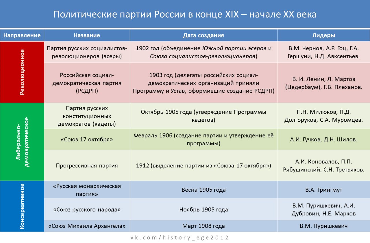 Социальный состав был очень пестрым, в основном преобладали представители мелкой буржуазии — лавочники, ремесленники, кустари, извозчики и т. д., но среди монархистов встречались и дворяне, крестьяне, рабочие. Максимальная численность — 100 тыс. человек в 1907г., однако фиксированного членства не было. Программные цели: сохранение самодержавия, борьба с революцией. В качестве методов их достижения допускали насилие и террор, погромы. Обвиняли во всех бедах инородцев, и прежде всего евреев, выдвигали крайне националистические, антисемитские лозунги: «Россия для русских», «Бей жидов — спасай Россию». В этих лозунгах — сущность этих партий, опиравшихся на низменные инстинкты толпы.