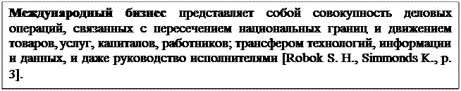Международный бизнес базируется на возможности получения выгод именно из преимуществ межгосударственных деловых операций, то есть из того факта, что продажа данного товара в другой стране или налаживания фирмой одной страны производства в другой стране, или предоставление услуг совместно фирмами двух стран третий и т. Д. Обеспечивают вовлеченным в бизнес сторонам больше преимуществ, чем они бы имели, если бы вели дело в своих странах. Это - ключевой момент не только в понимании природы и специфики собственно международного бизнеса, но и объяснении возникновения и развития международного менеджмента как такового.