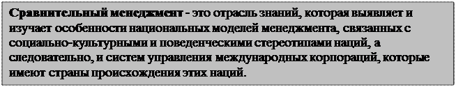 Исследования национальных моделей менеджмента сформировали новую область научных исследований - сравнительный менеджмент.