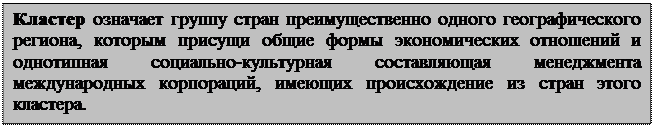 · национальные модели менеджмента материнских стран, в которых были основаны те или иные международные корпорации - культурологическая составляющая.