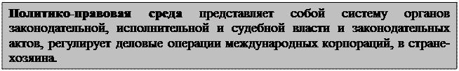 Базовым элементом среды является политико-правовая среда международных корпораций.