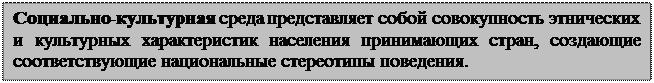 Под культурой понимают доминирующую в обществе систему ценностей, верований, обычаев и установок. Каждое общество имеет свою культуру, которая влияет на стиль повседневной жизни.