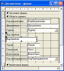 В форме Дисциплины произведены следующие изменения в режиме конструктора (рис. 21).