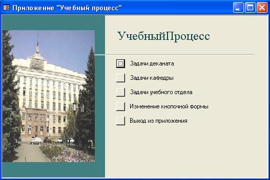 Рис. 33. Кнопочная форма приложения «Учебный процесс»