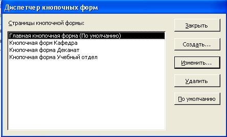 Рис. 34. Окно диспетчера кнопочных форм
