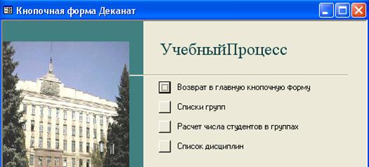 Рис. 39. Кнопочная форма Деканат