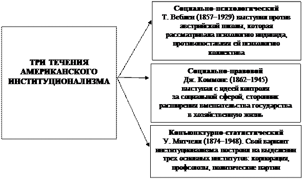 8. Если неоклассики исходят из тезиса о совершенстве рыночного хозяйственного механизма и саморегулируемости экономики, придерживаются «чистой экономической науки», то институционалисты движущей силой экономики наряду с материальными факторами считают также духовные, моральные, правовые и другие, рассматриваемые в историческом контексте. Представители данного направления отрицают решающую роль экономических отношений людей в системе общественных отношений.